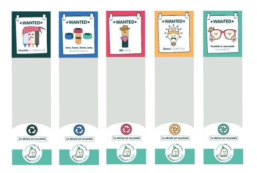 • Signalétique ludique, incitative et distinctive selon les déchets